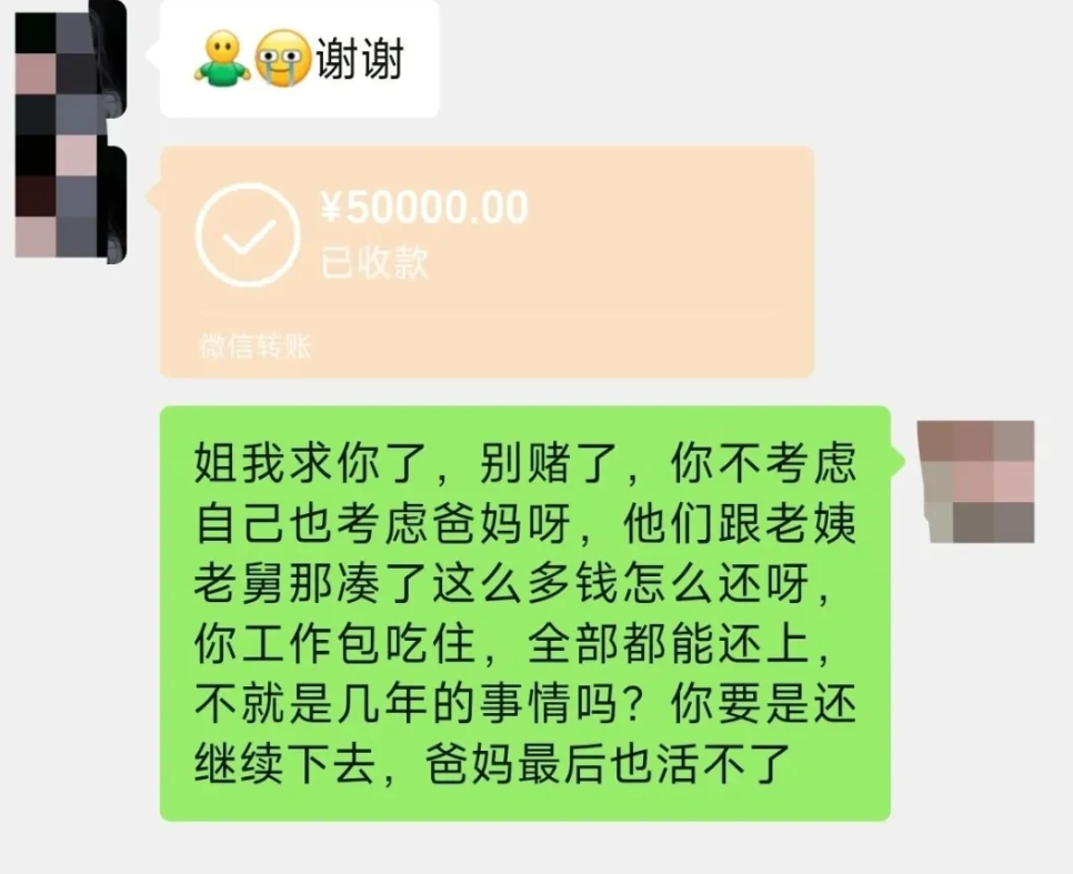 彩礼钱解决了,网贷信用卡欠着四五十万仍然没能力还,爸妈想让我出钱保她,工作在一切都有机会,就怕催收爆了通讯录,到时候她被开除,那就得不偿失了。我也不忍心看她失去工作,不管怎么说她都是我姐,后来跟老公商量了下,最终借了她5万块周转。