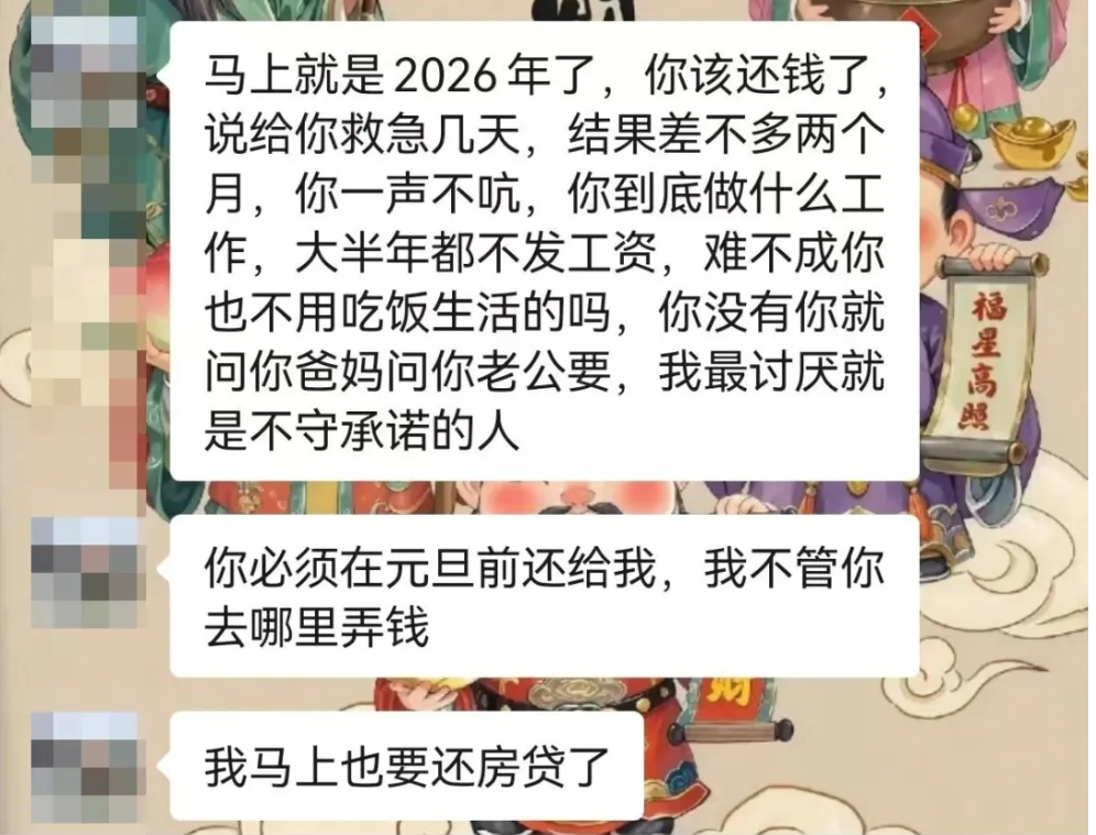 从大年初一开始,我整个人彻底崩溃了,就瘫软在床上,躺了两天两夜,不吃不喝。我爸妈过来砸我的门,喊我吃饭,我也完全不理会,就想一直躺着,逃避所有事。直到初三晚上,我实在饿得扛不住了,才慢慢起来吃了点东西。