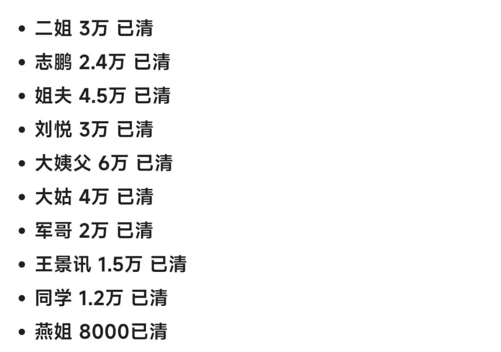 因为平时工作的地方管饭,加上本人也不抽烟,所以花销极少,每个月工资+外卖收入,大概12000左右,扣除1500的少量开支,我所有的钱都拿去第一时间还账。当然靠自己还清是不现实的,最近这三年,爸妈卖了田,加上他们这几年的收入大概也给了22万的样子,网贷信用卡那些也一并全还了。